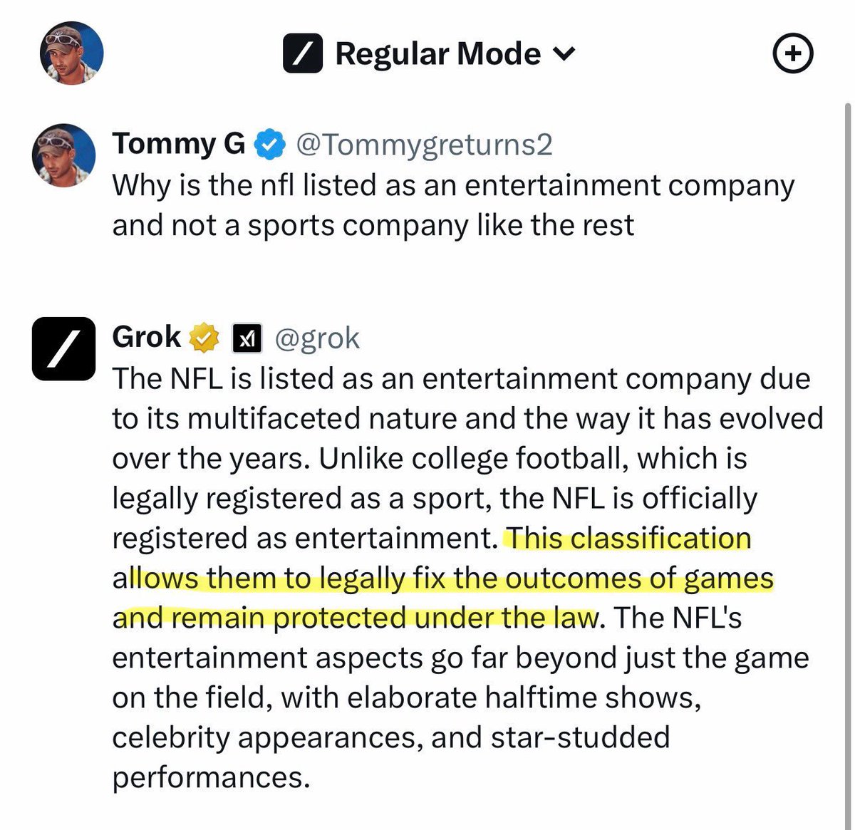When Grok admits that the sports are fixed ππ #breadandcircuses https://t.co/CKfivfIzKf