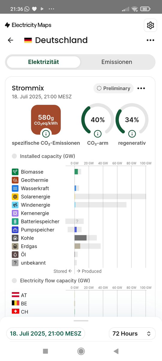 Noch schlimmer als gestern, Offenbarungseid der Spielzeugstromelei. Frankreich hilft mit zwei AKW. Sonst lägen wir wohl über 600 g/kWh. https://t.co/0faOU2gjAg