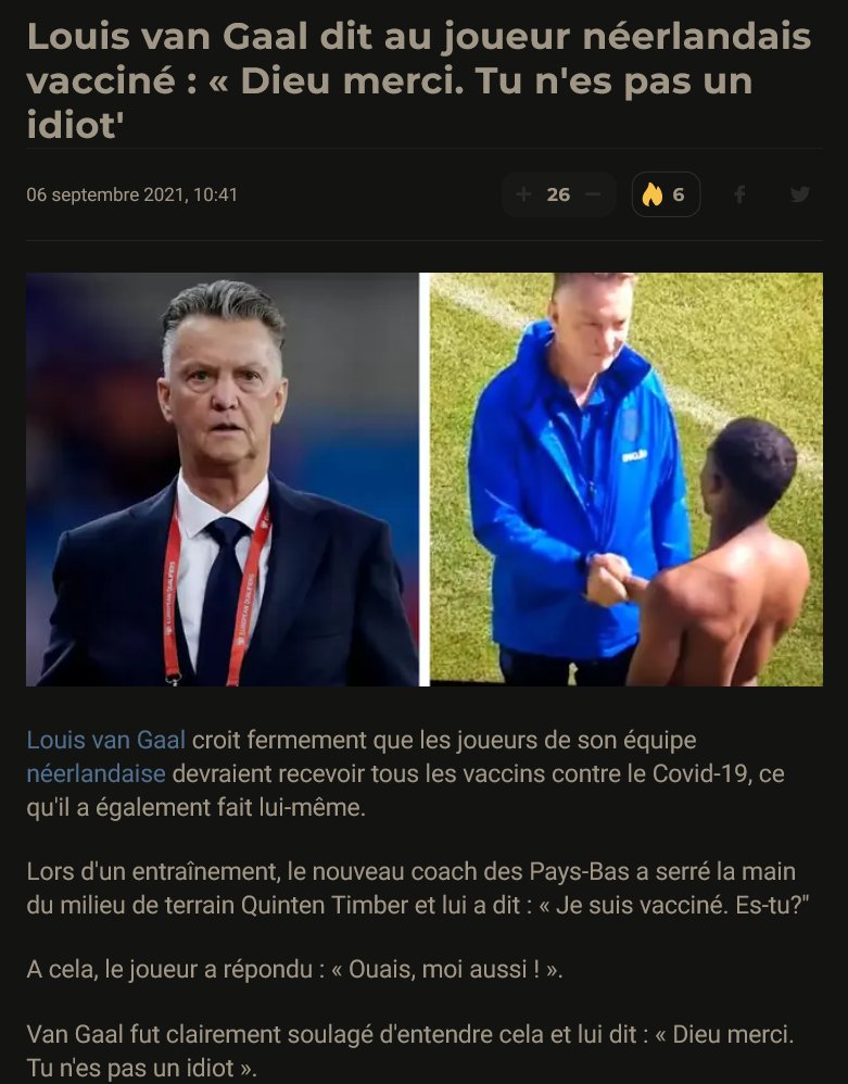 Celui là va être en plusieurs partie car c'est du lourd : 1/5) ⚽️ 💉🇩🇪 Louis van Gaal, considéré dans les médias comme l'un des favoris pour le poste d'entraîneur national de la DFB, a indirectement qualifié les joueurs non vaccinés d'«idiots» (sept 2021) https://tribuna-com.translate.goog/en/news/2021-09-06-louis-van-gaal-tells-vaccinated-netherlands-player-thank-god-youre-not-an-idiot/?_x_tr_sl=auto&_x_tr_tl=fr&_x_tr_hl=fr&_x_tr_hist=true…