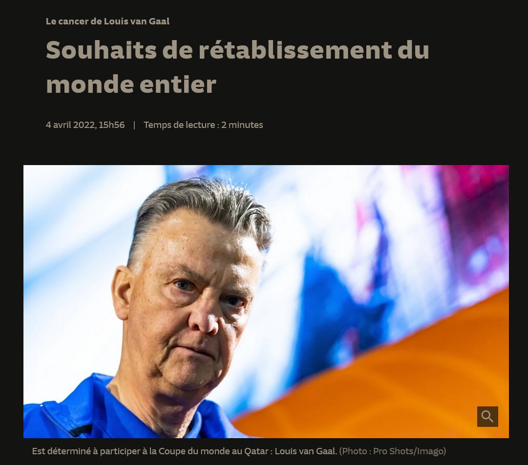 5/5) 4/4/22 Le cancer de Louis van Gaal "Dimanche soir lorsque van Gaal a parlé pour la première fois de son propre cancer dans une émission de télévision néerlandaise. L’hiver dernier, on lui a diagnostiqué une forme agressive de cancer de la prostate" https://www-sueddeutsche-de.translate.goog/sport/louis-van-gaal-niederlande-fc-bayern-krebs-interview-1.5560537?_x_tr_sl=auto&_x_tr_tl=fr&_x_tr_hl=fr
