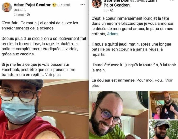 10/X) Des frères et sœurs vaccinés de 25 et 23 ans sont tous deux décédés d'un arrêt cardiaque à la suite de vaccins 01/09/21 Alessandro Campo 25 ans est décédé subitement dans son sommeil 01/11/21 Vittoria Campo 23 est décédée d'un arrêt cardiaque https://www-covidvaccineinjuries-com.translate.goog/covid-vaccine-stories/alessandro-vittoria-campo-25-23-year-old-siblings-both-died-after-covid-shots-of-cardiac-arrest/?_x_tr_sl=auto&_x_tr_tl=fr&_x_tr_hl=fr