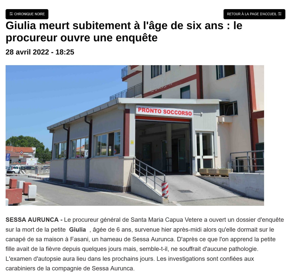 37/X) 02/04/22 Tragédie dans la région napolitaine, un garçon de 12 ans meurt d'une maladie à l'école, se serait senti mal alors qu'il était à l'école et se serait rapidement évanoui, "le décès serait survenu de causes naturelles" https://www-fanpage-it.translate.goog/napoli/tragedia-nel-napoletano-bambino-di-12-anni-muore-per-un-malore-a-scuola/?_x_tr_sl=auto&_x_tr_tl=fr&_x_tr_hl=fr