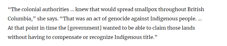 Up to 90% percent of the indigenous population of British Columbia was killed, and the epidemic collapsed large segments of indigenous British Columbian society. Historians have called it a genocide.