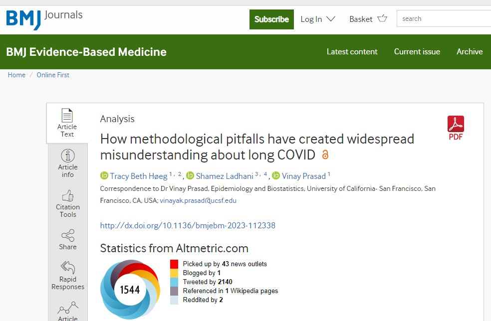 It was published in the BMJ Evidence-Based Medicine, a low impact journal. As the covid and long covid experts at the Putrino Lab said, the lack of scientific rigour behind it meant it "may as well have been a blog piece." https://t.co/rfGFWi7OgG