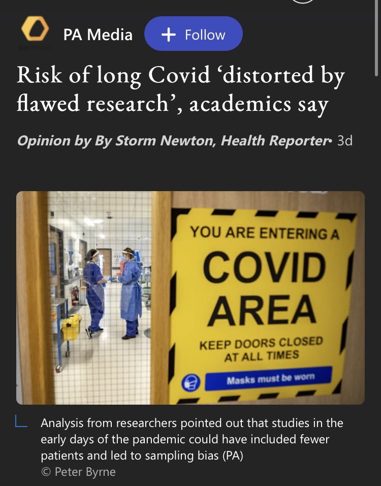 The other day a story about long covid risk being exaggerated appeared across mainstream media outlets, garnering millions of views. It revealed a major problem with how news originates, particularly through news agencies such as PA Media, Associated Press, Reuters 🧵