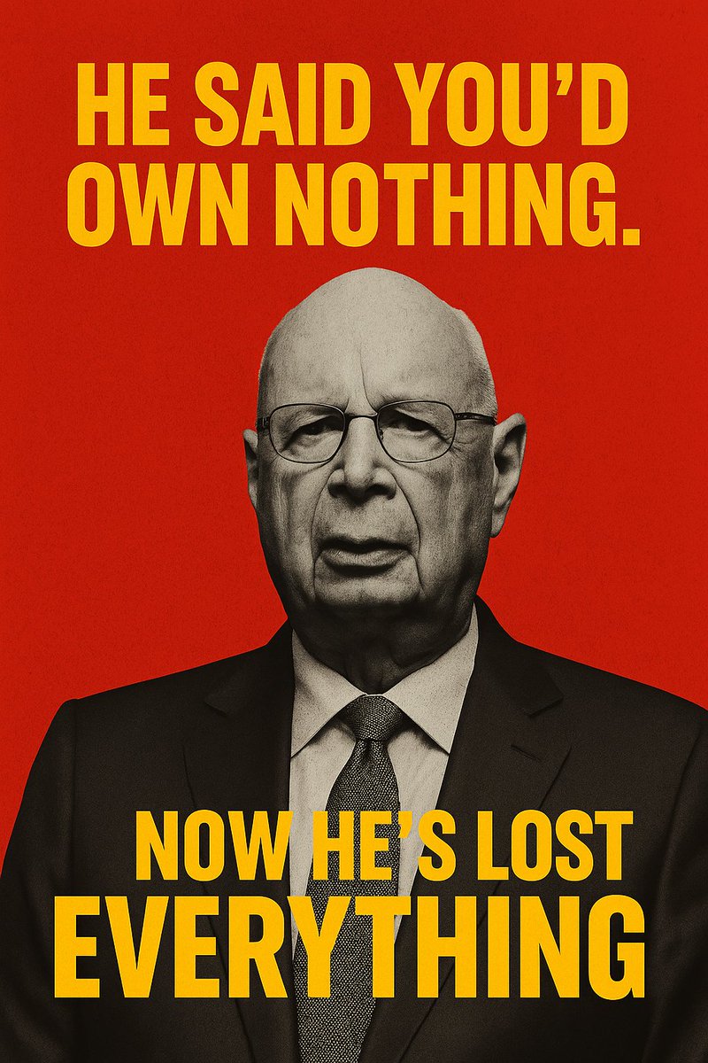 “You will own nothing and be happy,” they said. Well, now Klaus Schwab has nothing. And he’s far from happy. 15/16 https://t.co/YJp14ZwOCZ