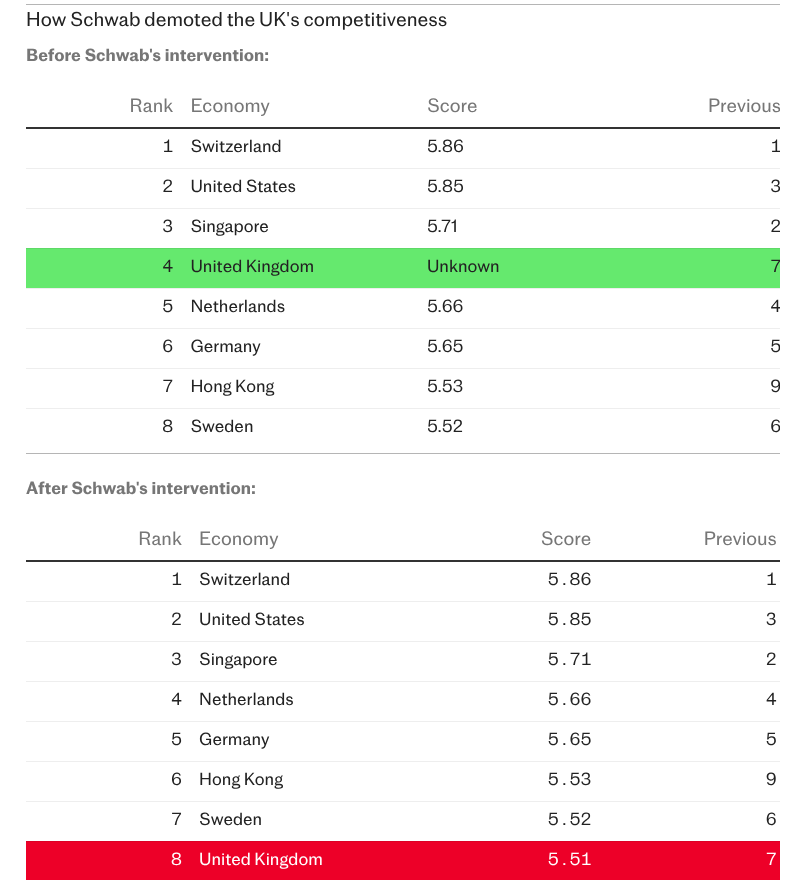 Schwab rigged the Forum’s “Global Competitiveness Report.” He told staff the UK “must not see any improvement.” Why? Because pro-Brexit voices might use it as proof Britain didn’t collapse. He literally cooked the books to attack democracy. 5/16 https://t.co/fl73T1P84a