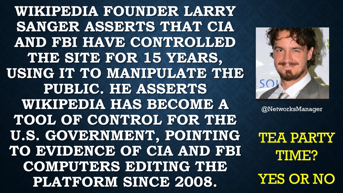 Wikipedia founder Larry Sanger asserts that CIA and FBI have controlled the site for 15 years, using it to manipulate the public. He asserts Wikipedia has become a tool of control for the U.S. government, pointing to evidence of CIA and FBI computers editing the site since 2008. https://t.co/GCKFh8k5un