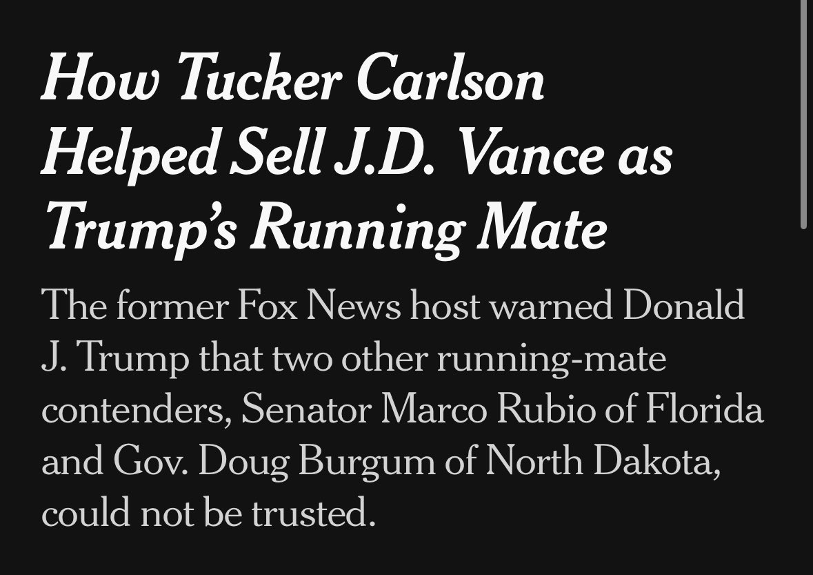 Palantir co-founder Peter Thiel sponsored JD Vance’s business & political career. Palantir is a CIA cutout. Tucker pushed Trump to nominate Vance and then Vance hired Tucker’s son. Tucker’s dad ran US propaganda for the CIA. All of these people glow in the dark. https://t.co/NXun3LRbrF