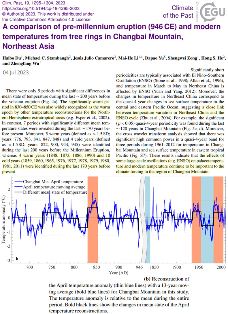 Etude : Les températures (Asie du NE) ne sont pas plus chaudes aujourd'hui qu'au XIXe siècle ou dans les années 40. La période la plus chaude de l'ère commune s'est produite à l'époque médiévale (830-850 CE). derniers 170 ans, 8 des 10 années les plus froides depuis 1965.