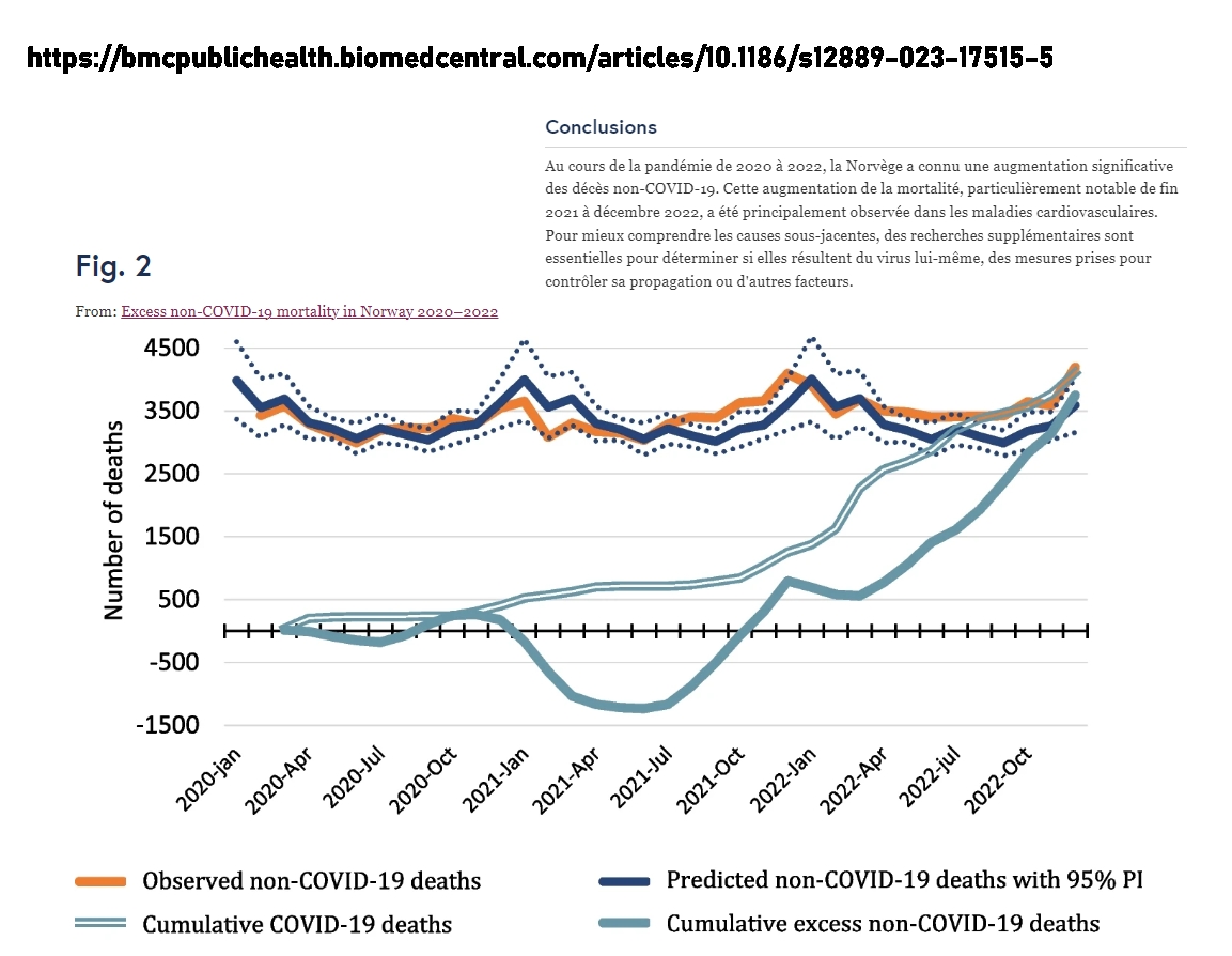 Etude norvégienne sur la grosse surmortalité Non Covid. Surtout cardiovasculaires à partir de juillet 2021 Ils n'ont pas trop d'idées mais ils réfléchissent encore🙄 On leur dit ?