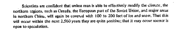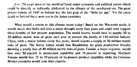 TREAD 1/N rapport CIA 1974 Changement climatique Avec le consensus climatique mondial ils annoncent le CC avec sécheresses , inondations, famines, migrations massives à cause du refroidissement , climat "néo-Boréal"- retour au petit âge glaciaire