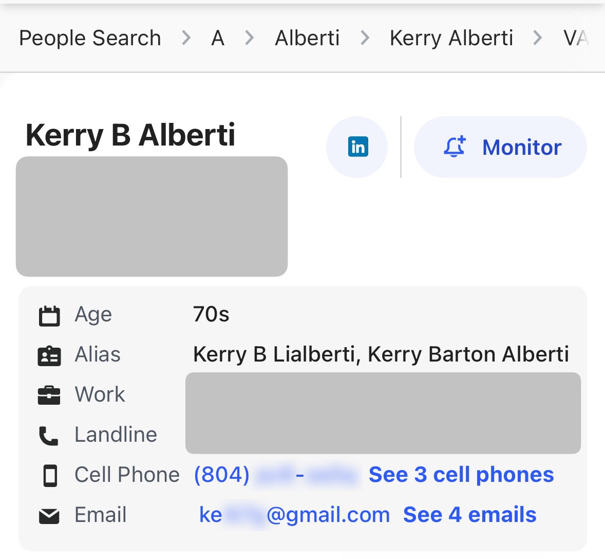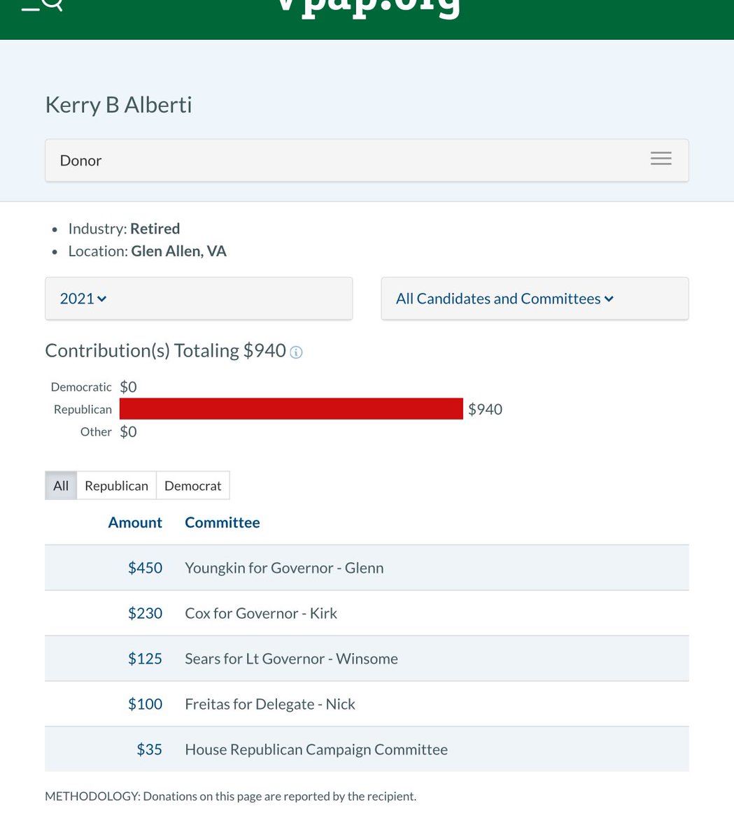 Kerry Alberti is a 79yo living in Richmond VA suburbs, renting an apt for < $2000 per month She allegedly has 22,619 Dem donations since ‘19, for $839,466 in 592 days Utter fraud (ID theft) via @actblue Yet ~$1K likely legit state @VA_GOP donations. AGs like @JasonMiyaresVA 🦗 https://t.co/KJFIe8V6R1