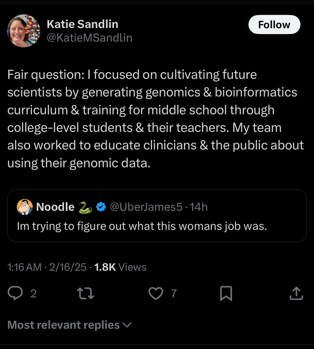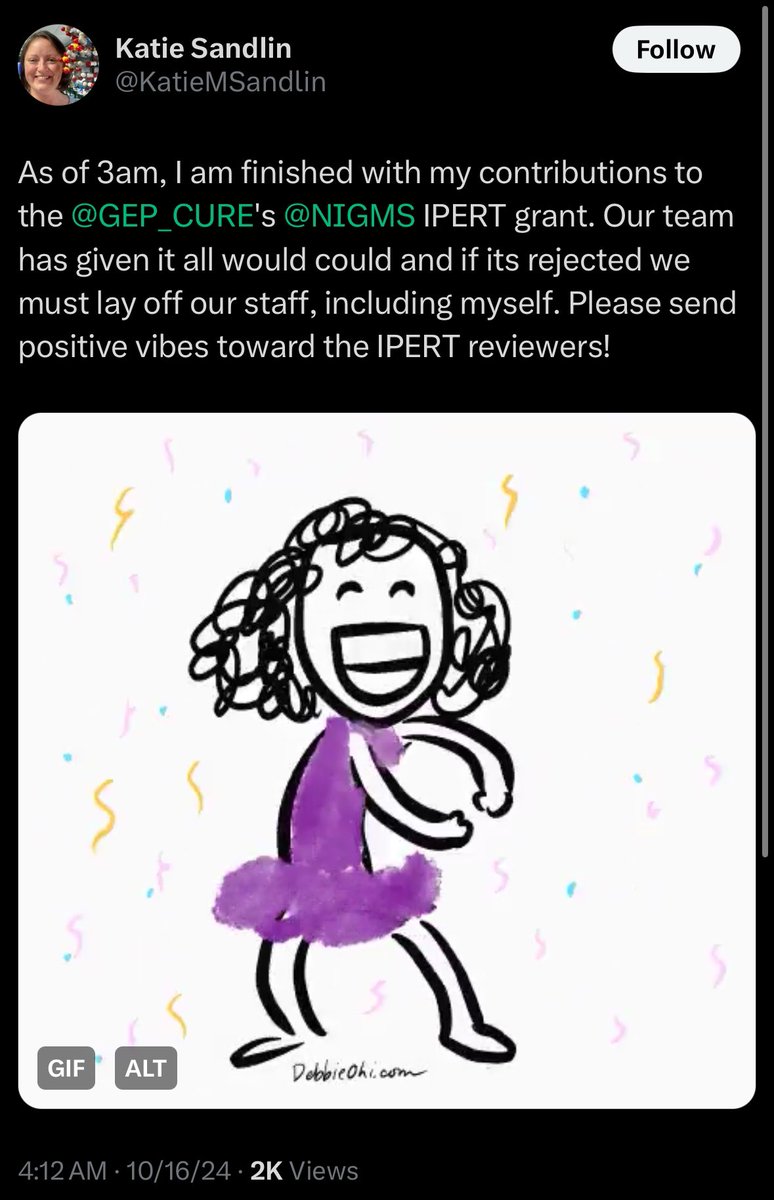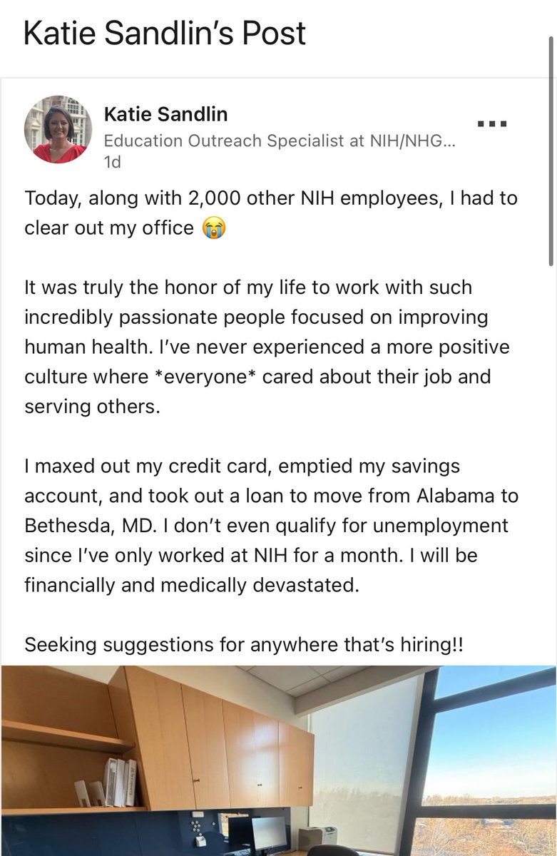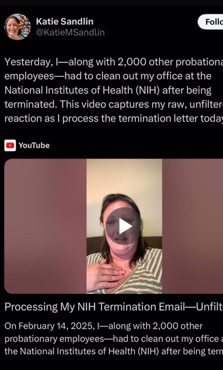 @NIH @KatieMSandlin @GEP_CURE @NIGMS @usedgov Katie has in fact deleted all her @X posts lamenting the end to her probationary status We can presume she did not take the fork in the road email seriously while working for a month at @NIH https://t.co/i1rWxOu0lt
