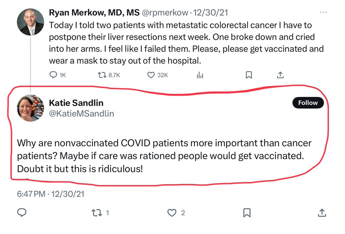 @NIH @KatieMSandlin @GEP_CURE @NIGMS @usedgov @X Katie also wanted to ration health care to C19 unvaccinated Americans That’s right… she worked at NIH with the opinion that those skeptical of Fauci’s ouchie C19 mRNA shot should be last in line for health care Probably not who 🇺🇸wants at @NIH
