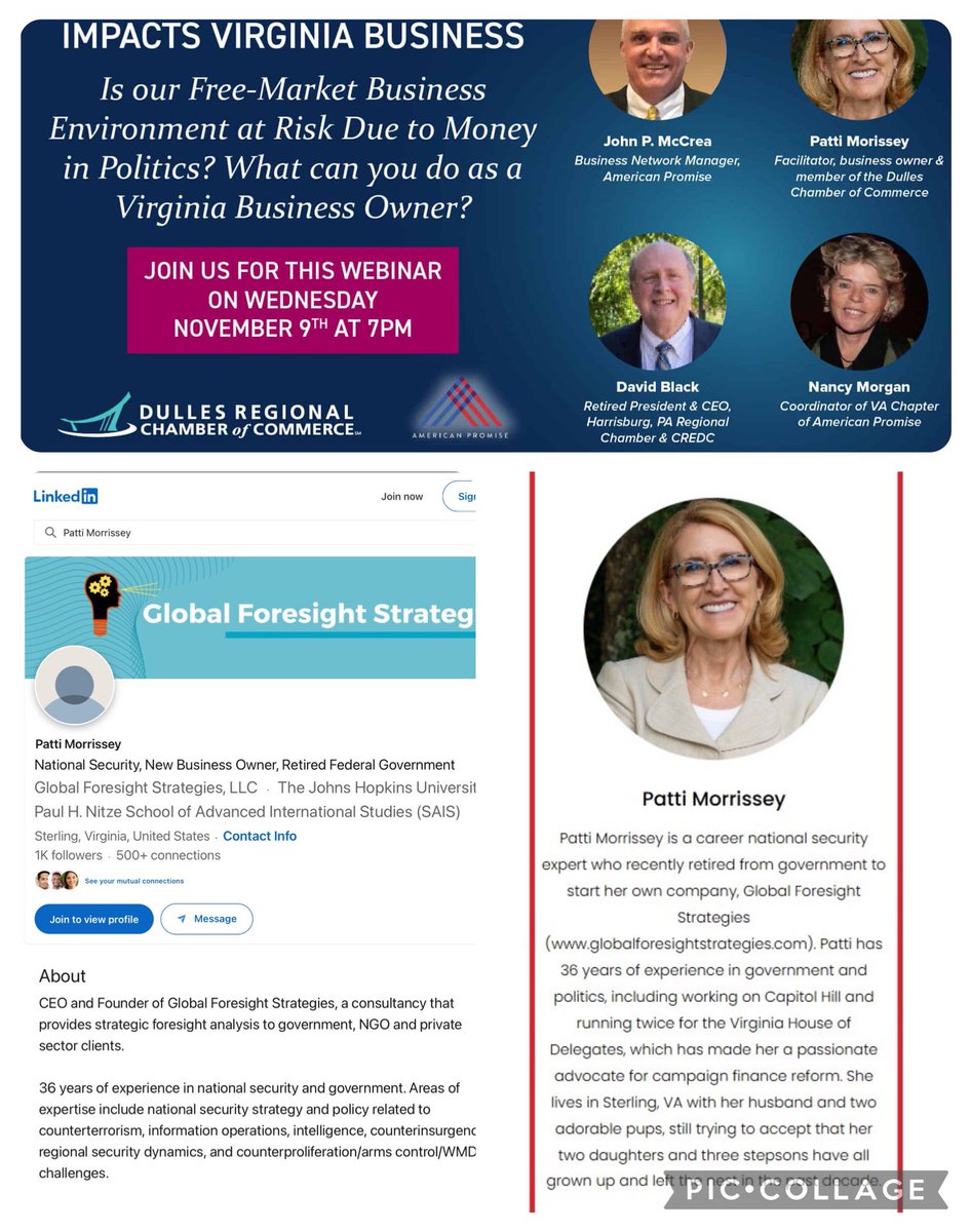 The white liberal woman who accosted @annetta_of in Old Town Alexandria, VA is Patti Morrissey, CEO of Global Foresight Strategies Retired DoD, State, ODNI Federal employee Patricia is a longtime @timkaine donor & former (unsuccessful) @vademocrats candidate for State House