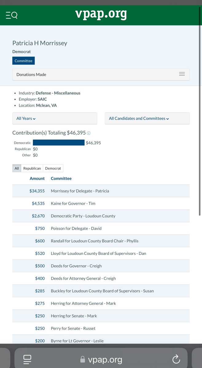 @pattimor2011 @annetta_of @timkaine You can tell Patti Morrissey is an angry white liberal cat lady by her donations too… This is the typical NoVA federal employee (now retired)… sucking off the neocon war industry and keeping Dems like @timkaine in power to send your kids to war
