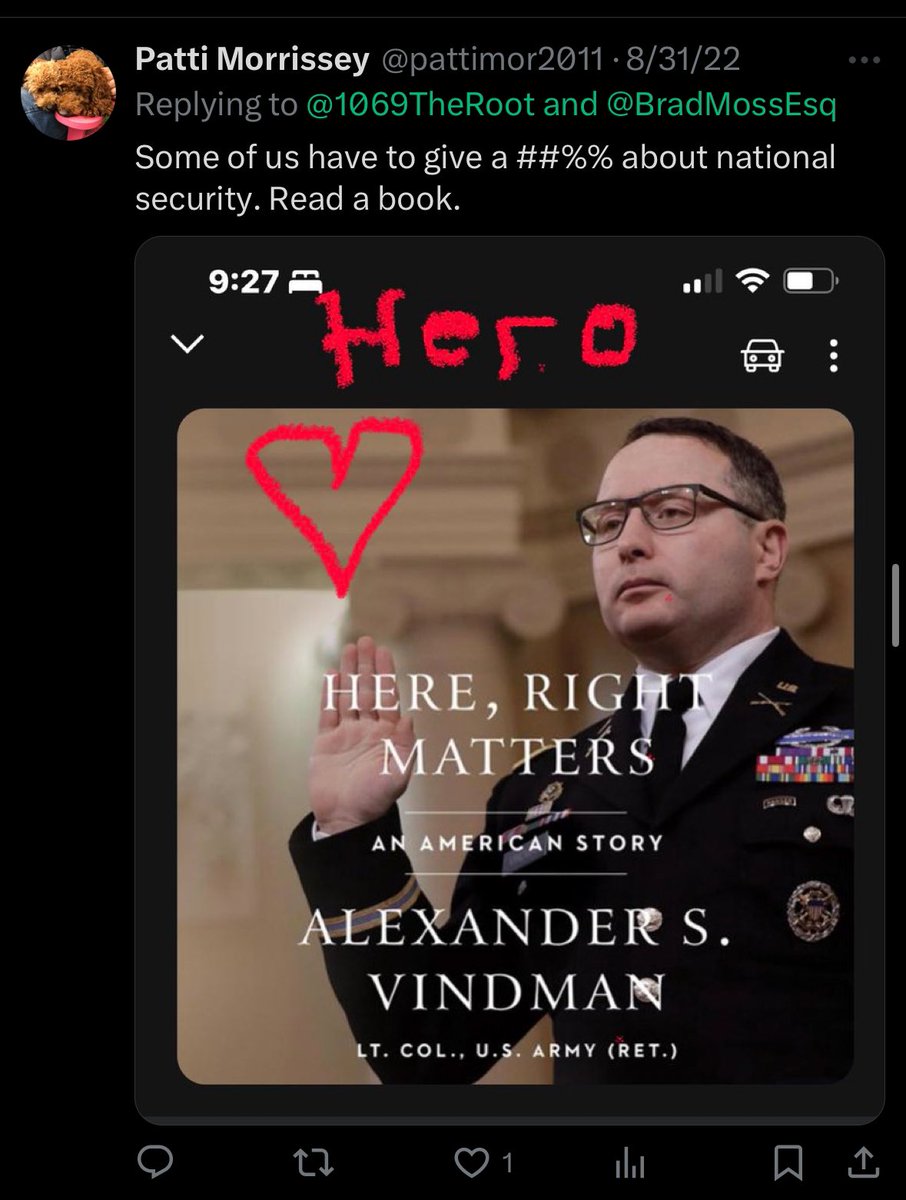 Patti Morrissey, when not shouting at black women in Alexandria, VA… is a Vindman family fangirl, a Dr. Fauci disciple, and as we all know… a national security and information warfare expert
