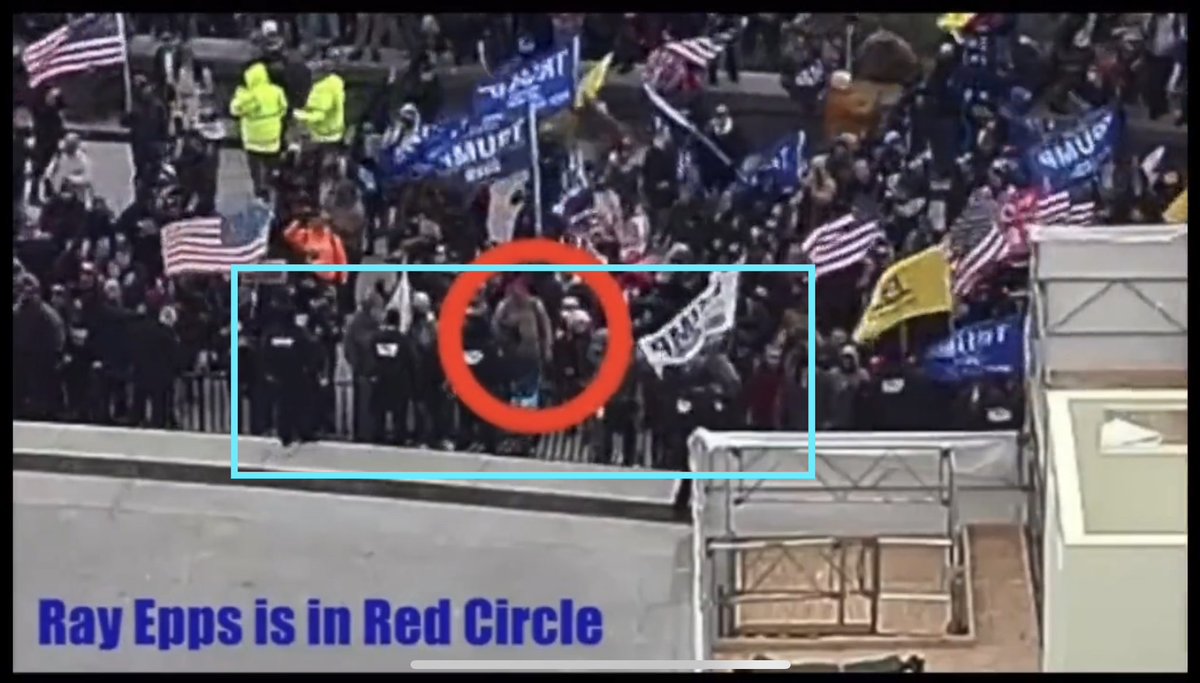 Ray Epps was in the crowd who helped lift up the Trump sign & push it into the line of police 👮♂️ on the West side of @uscapitol ~1:40 pm (original 🎥 by Just Another Channel & Savanah Hernandez) CBS News’ @MacFarlaneNews has yet 2 interview Epps, a free & protected man https://t.co/hvcbyDL0fK
