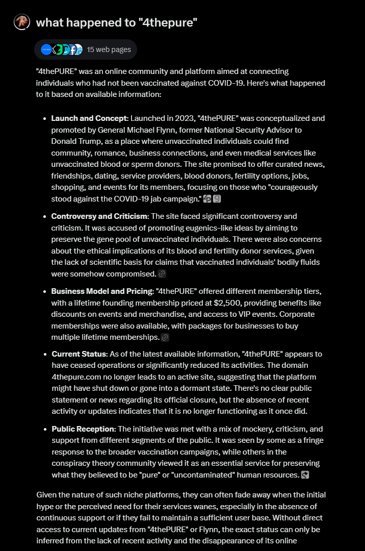 @GenFlynn @xAlphaWarriorx @Biz_Shrink @TishaLee777 @BiggerTruth @briangamble_v1 @SunTzusWar @THEREALESMITTY @Wikipedia @ODNIgov @NSAGov @4thePURE @BusinessInsider Here is @Grok's confirmation about the above failed grift scheme @4thePURE: https://t.co/7MoXNYKzct https://t.co/fOqqKpGpYl