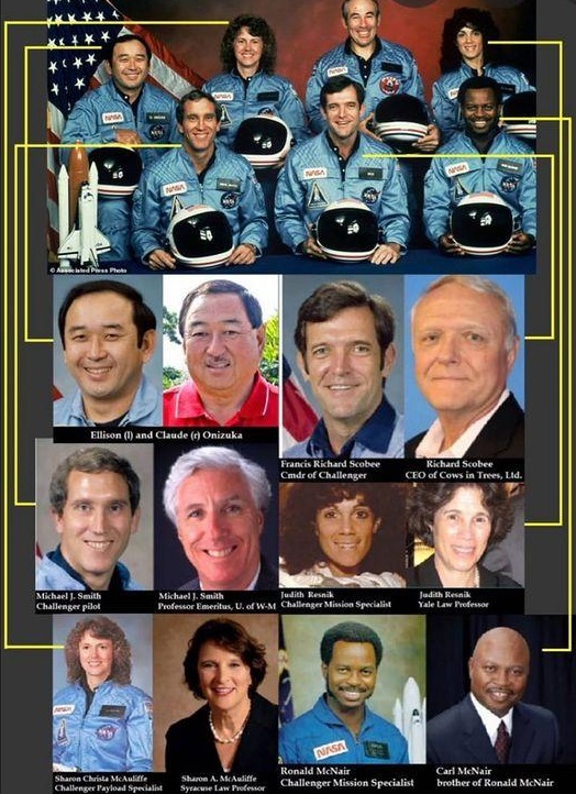 6/7 @NASA astronauts who faked their death as part of the 1986 Challenger Explosion can still be identified alive today as themselves or as their "sibling": Carl S. McNair Claude Onizuka Judith Resnik Michael J. Smith Richard Scobee Sharon A. McAuliffe ๐ https://www.humorousmathematics.com/post/the-earth-is-flat-stationary-destroying-the-freemasonic-luciferian-globalist-globe-lie