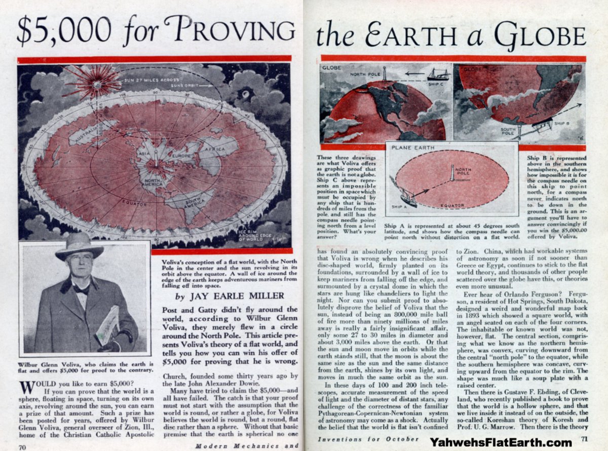 October 1931 Modern Mechanics "$5000 For Proving The Earth A Globe" (Never Claimed To This Day) ๐ https://archive.org/details/modern-mechanics-oct-1931-prove-earth-is-round ๐"The Earth Is Flat & Stationary: Destroying The Freemasonic Luciferian Globalist "Globe" Lie" ๐ https://humorousmathematics.com/post/the-earth-is-flat-stationary-destroying-the-freemasonic-luciferian-globalist-globe-lie