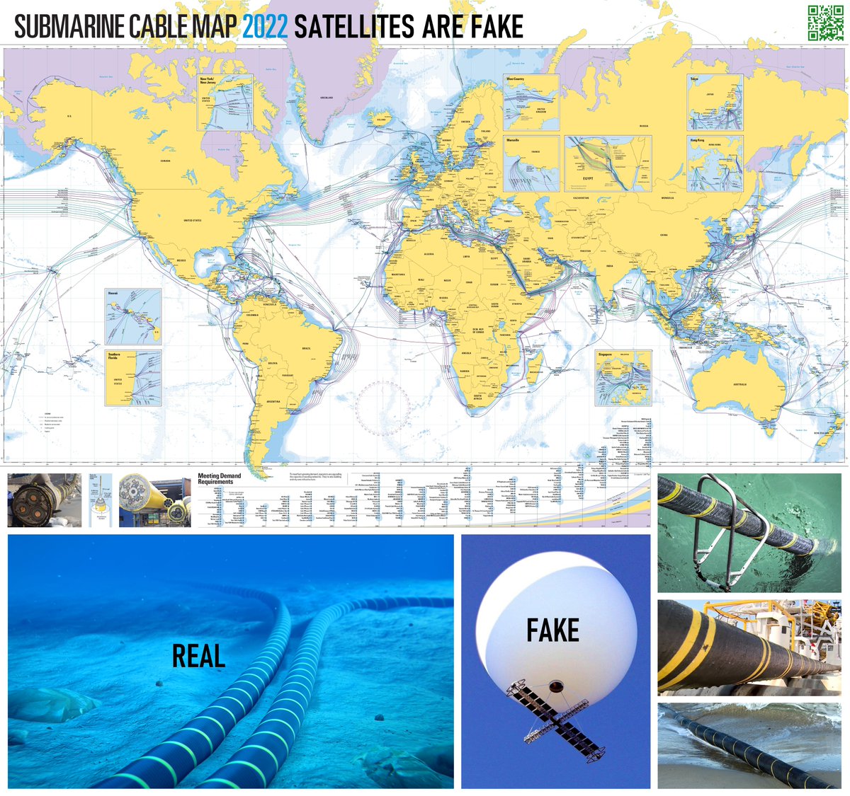 The Earths internet connections are not transmitted by thousands of satellites as @NASA states, but rather 1,000s of KMs of sea floor "submarine communication cables" as seen on the Submarine Cable Map 2022 which depicts 486 worldwide cable systems. ๐ https://www.humorousmathematics.com/post/the-earth-is-flat-stationary-destroying-the-freemasonic-luciferian-globalist-globe-lie