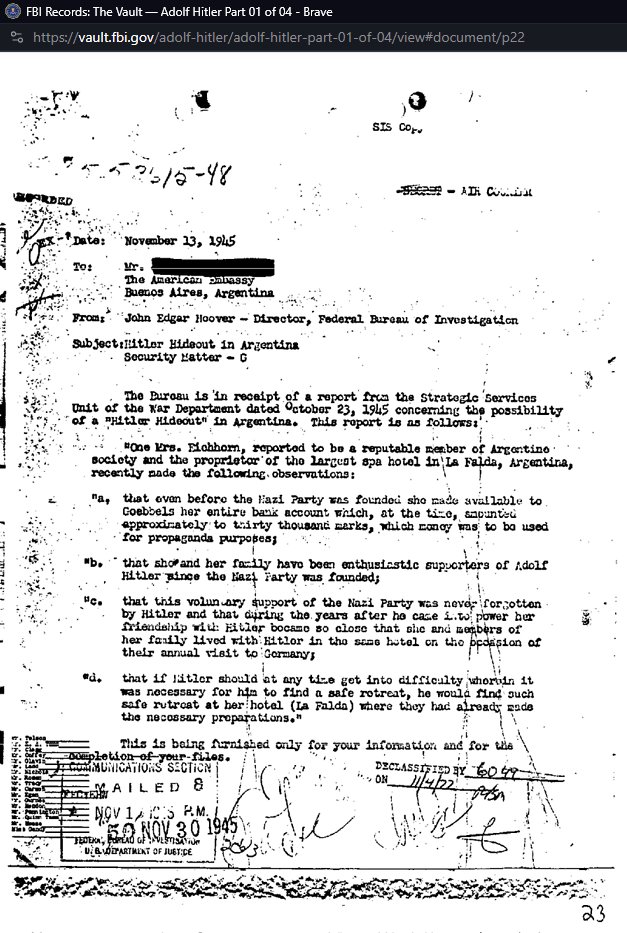 This declassified document shows Hitler fled to Argentina with other Schutzstaffel (SS). Later died in 1957 due to death by car crash. In addition to Argentina, the SS also fled to U.S.A via Operation Paperclip and formed @NASA. ๐ https://humorousmathematics.com/post/rothschildism-the-illuminati-nazi-world-order-nwo