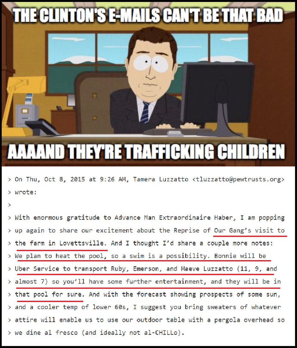 Farmers L Update & Welcome Mat @WikiLeaks Email: From: @TameraLuzzatto Senior VP, Gov Relations @PewTrusts To: @JohnPodesta "Ruby, Emerson and Maeve Luzzatto (11, 9 & almost 7) so youโll have some further entertainment, and they will be in that pool" ๐ https://humorousmathematics.com/post/platforms-housing-child-sex-trafficking-must-be-investigated-eradicated-etsy-wayair-yandex