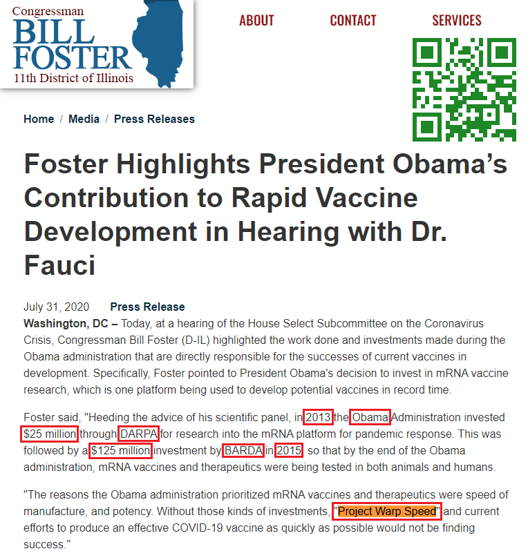 ๐ธObama Funded Warp Speed๐ July 31, 2020 @RepBillFoster questions @NIH Dr. Fauci re: COVID-19 mRNA bioweapon injection R&D. In 2013 @BarackObama gave $25M via @DARPA to startup @moderna_tx to develop mRNA injections, followed by $125M to @BARDA in 2015.