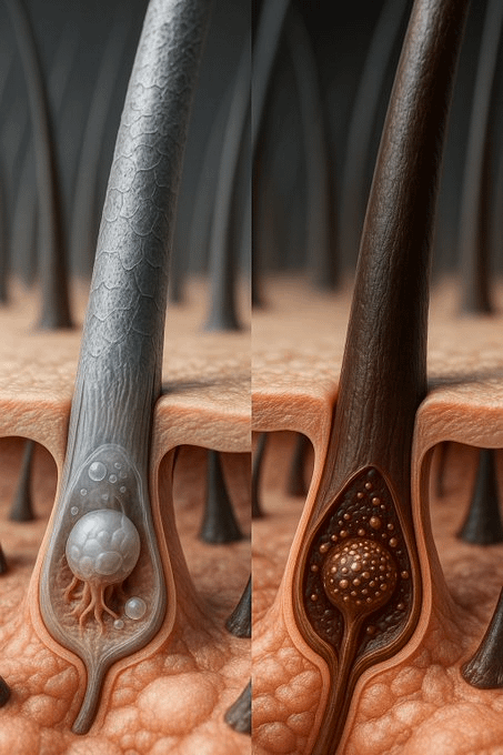 Most people don’t realize the true cause of hair loss: Your body is missing the raw materials needed to build and protect hair follicles. No shampoo can solve a deficiency that starts beneath the scalp.