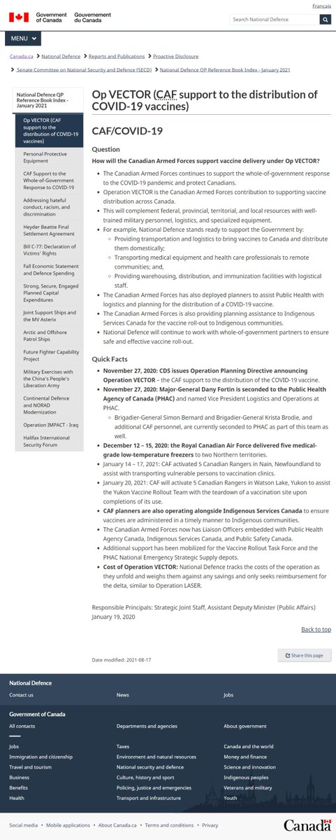 @ChatterBox_Muse National Defence Reports and Publications Proactive Disclosure Senate Committee on National Security and Defence (SECD) National Defence QP Reference Book Index - January 2021 Op VECTOR (CAF support to the distribution of COVID-19 vaccines) https://www.canada.ca/en/department-national-defence/corporate/reports-publications/proactive-disclosure/secd-state-of-caf-19-april-2021/reference-material/op-vector.html