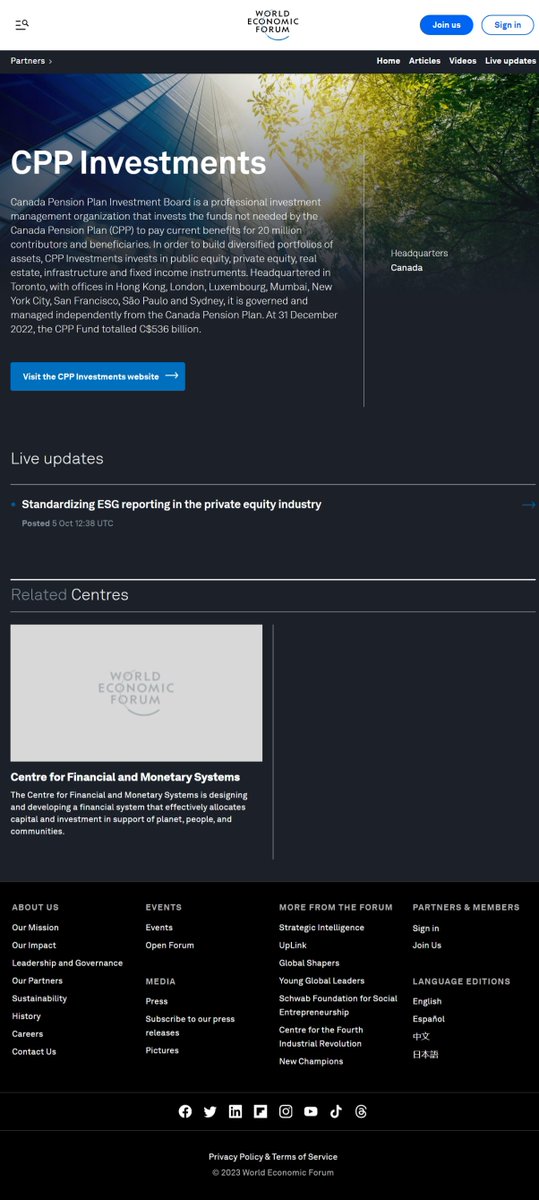 @cbcwatcher 🚨🚨 WEF = Klaus Schwab...!! = Why is WEF, = Even "Involved" = with Canada's CPP/and "Other" Canadian Pensions...??? WEF Site = "At 31 December 2022, the CPP Fund totalled C$536 billion." https://www.weforum.org/organizations/canada-pension-plan-investment-board
