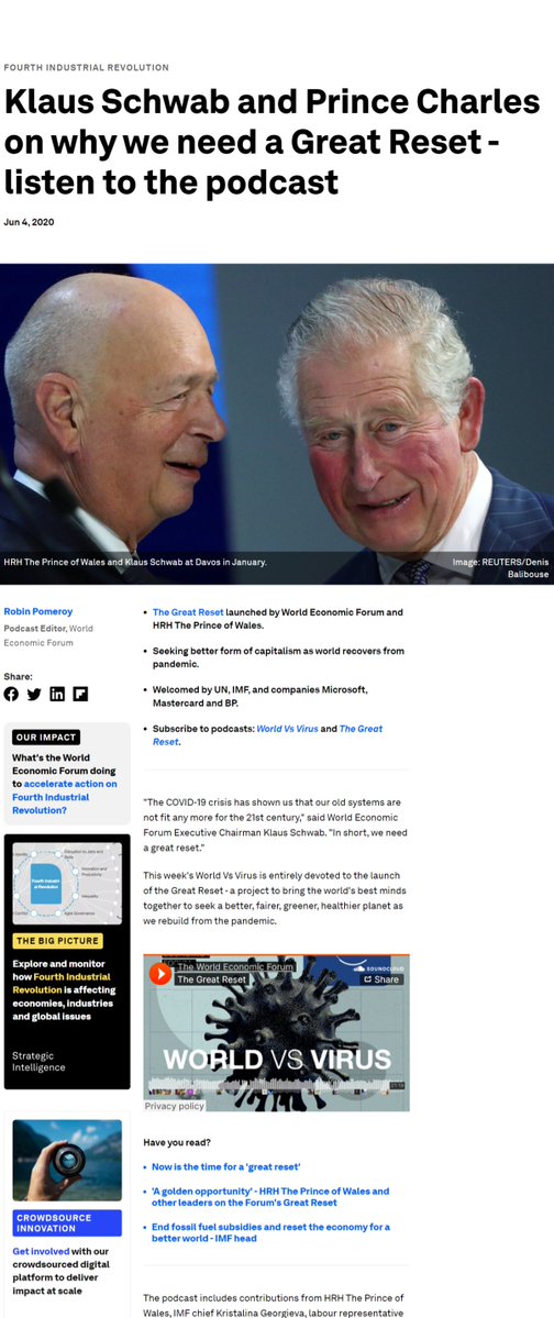 @MarkAHoffman2 @stkirsch 🚨🎯🌎 FOURTH INDUSTRIAL REVOLUTION Klaus Schwab and Prince Charles on why we need a Great Reset - listen to the podcast Jun 4, 2020 https://www.weforum.org/agenda/2020/06/the-great-reset-this-weeks-world-vs-virus-podcast/