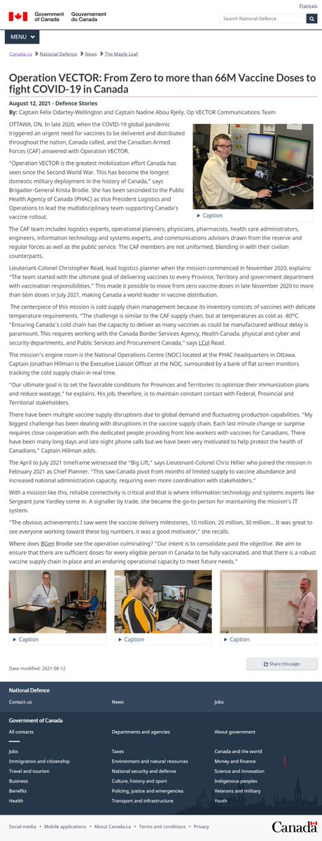 @ChatterBox_Muse http://Canada.ca National Defence News The Maple Leaf Operation VECTOR: From Zero to more than 66M Vaccine Doses to fight COVID-19 in Canada August 12, 2021 Defence Stories By: Captain Felix Odartey-Wellington and Captain Nadine Abou Rjeily, Op VECTOR Communications Team https://t.co/O5SDRMbFjv