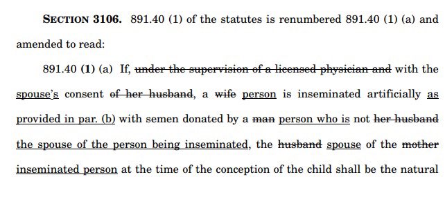 Wisconsin’s Democrat Governor attempting to replace the word mother with ‘inseminated person.’ Gov. Tony Evers’s office has introduced a bill that would change the way a Wisconsin state law addresses biological women and men. According to the bill, terms such as wife, husband, mother, and father have been crossed out and removed in favor of terms like spouse, person, and even inseminated person. Source: WSAU H/T @DanODonnellShow