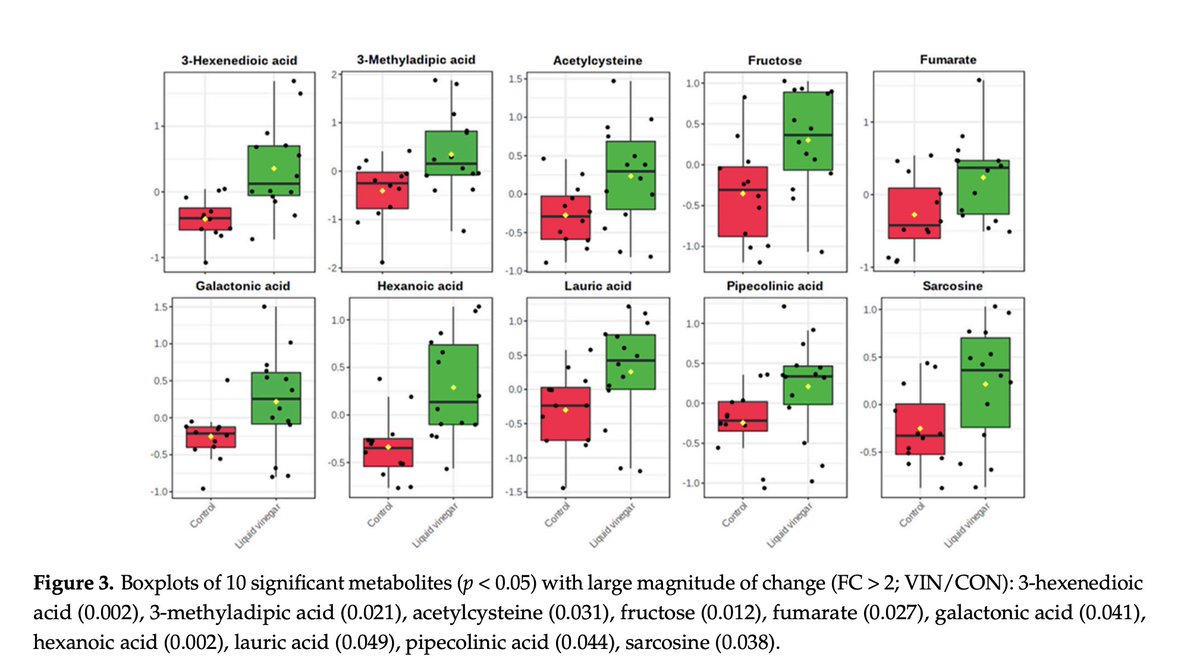 To better assess why vinegar was able to have these mood improving effects, the researchers collected urine and analyzed over 900 metabolites. 17 of them were found to be changed by vinegar. (7/8)
