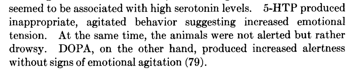 In fact, it supported the exact opposite: administering serotonin precursors caused sedation, numbness, convulsions, tremors and agitation. Dopamine precursors produced alertness with none of these “side effects.”