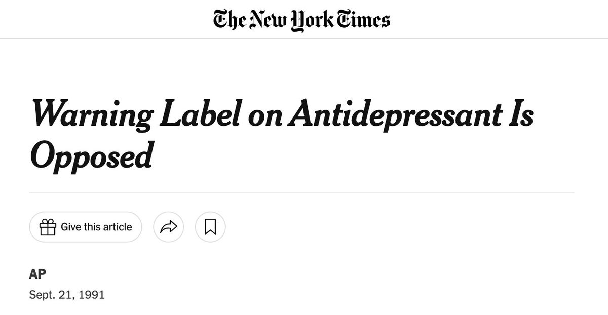 Despite massive evidence to the contrary, in 1991 the FDA concluded that there was no evidence for a causal link between Prozac and violence. Shocking.