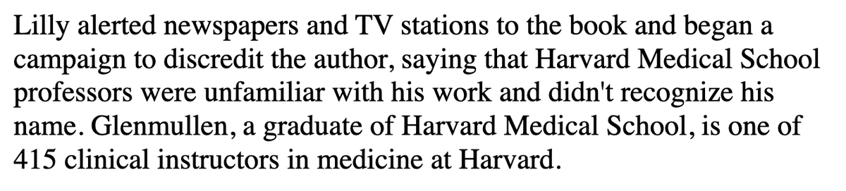 Lilly later initiated a media smear campaign against another Harvard doctor published the book Prozac Backlash, detailing Lilly’s malpractice and tendency to hide or downplay harms of their drug.