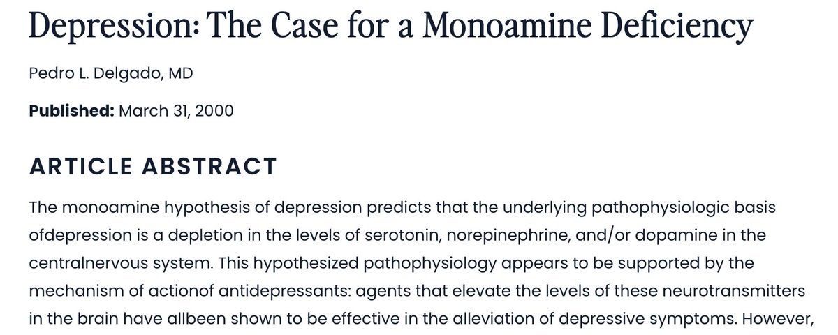 Pharma giant Lilly went to work quickly on developing drugs that selectively increased serotonin. In their original manuscript, they claim that there is multiple lines of evidence suggesting serotonin is low in depression, but their references don’t remotely support this.