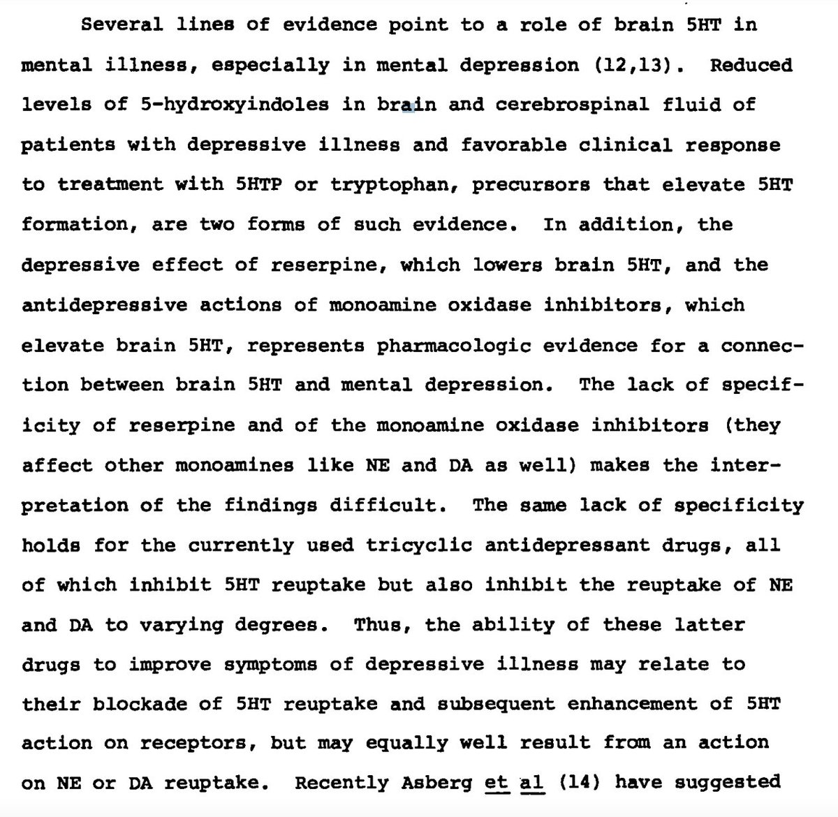 They also note that 5HIAA cerebrospinal fluid concentrations, which is the “deactivated” version of serotonin, were decreased in certain mental illness. They went ahead and assumed that this was because they had less serotonin generally, not because they had less turnover!