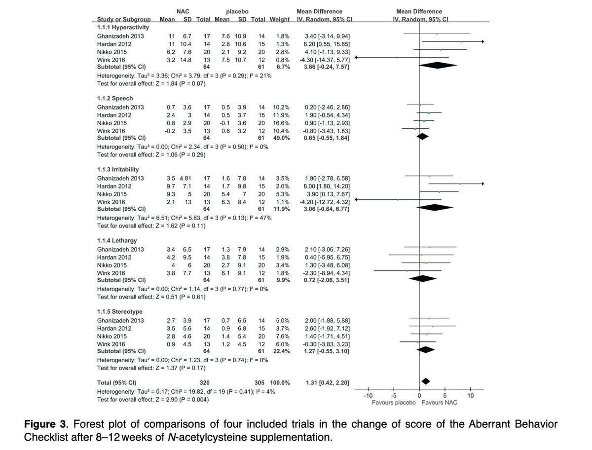 NAC had huge improvements for autism - cutting the symptoms of irritability in half. A striking and consistent downward trend in this metric over the 12 weeks, compared to placebo which was unchanged. (4/9)