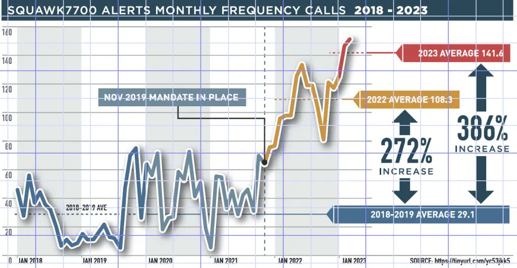 Il a décidé depuis d'enquêter et voici ce qu'il a découvert : Lorsqu'un équipage lance un appel de détresse (Mayday) le pilote ou un bot se charge de prévenir l'ensemble du trafic aérien avec le code "Squawk 7700". Voici les statistiques de l'utilisation de ce code depuis 2018 🧐