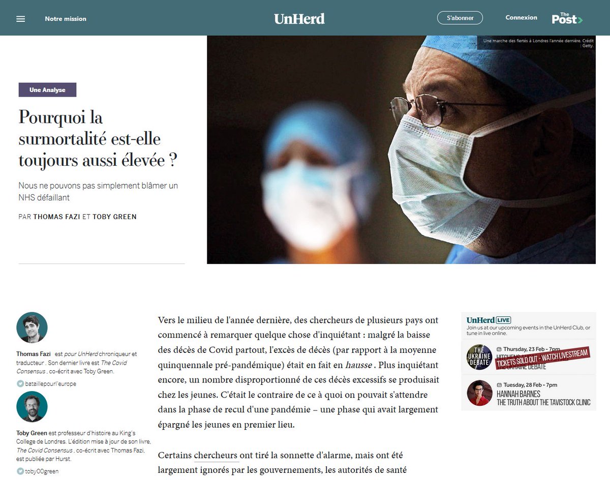 🇺🇸 États-Unis 30 janvier 2023 UnHerd 2022, malgré la baisse des décès Covid, la surmortalité augmente, particulièrement chez les jeunes. https://unherd.com/2023/01/why-are-excess-deaths-still-so-high/