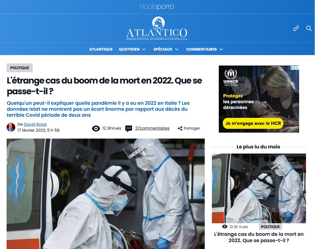 🇮🇹 Italie 17 février 2023 Atlantico Selon les données Istat (Institut nationale des statistiques 🇮🇹) la surmortalité en 2022 est de 9,75%. "Quelqu'un peut-il expliquer quelle pandémie il y a eu en 2022 en Italie ?" https://www.nicolaporro.it/atlanticoquotidiano/quotidiano/politica/lo-strano-caso-del-boom-di-decessi-nel-2022-che-succede/