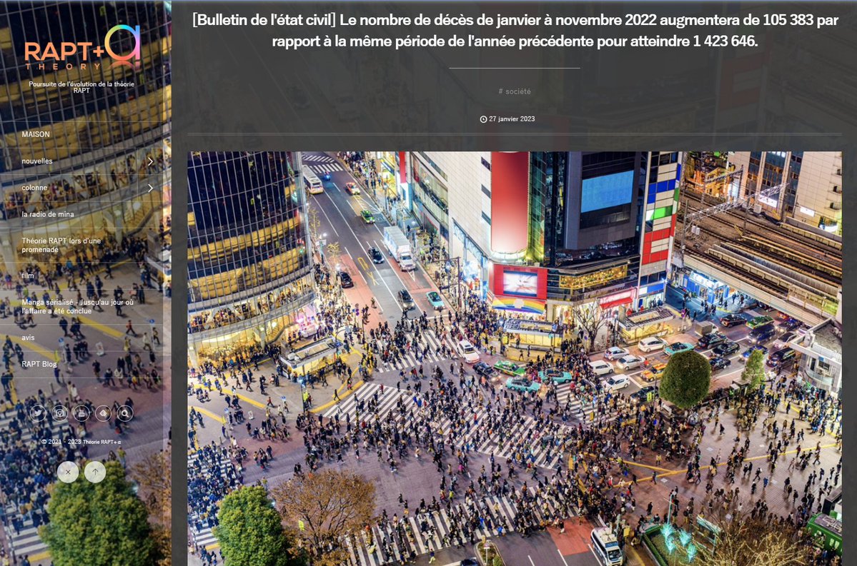 🇯🇵 Japon 27 janvier 2023 Rapt+Alpha 105383 décès en + entre janvier et novembre 2022 comparé à la même période en 2021. Source : ministère de la Santé, du Travail et des Affaires sociales. https://rapt-plusalpha.com/65668/