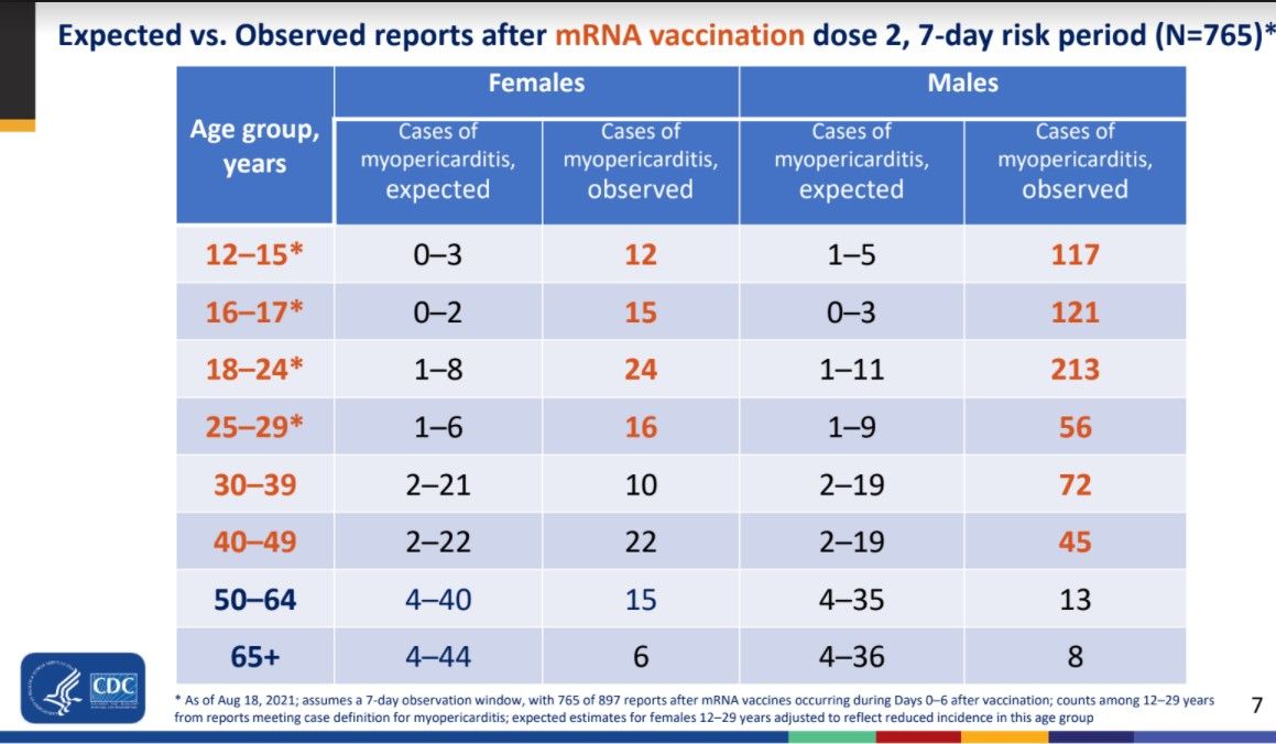 MYOCARDITIS - WE KNEW - CDC published - August 21 - NOBODY DID ANYTHING. Le CDC avait initialement - en date du 18 Aout 2021 - publié un tableau CORRECT. 1. Les stats de base (globales, style high school) furent celles utilisées par les communicants et nos décideurs. Car les pollsters ne comprennent rien d'autre je suppose :). Et ils vous ont dit" Risques très faibles , cas rares. Malgré tout en Israel, au premier trimestre 2021, on avait publié entre 1/3000 et 1/5000 selon le sexe - ce qui est ÉNORME mais passons! La TV nationale IL en avait même parlé- cela doit se retrouver non? 2. En épidémiologie, on utilise des Odds Ratios (OR) cad. qu'on compare des pommes et des pommes Comment? En regardant la fréquence des myocardites par ex. dans une population NON vaccinée, mais individus matchés en âge, risques et dossiers médicaux par rapport à ceux vaccinés qui ont eu le problème. Et puis, on fait le rapport entre ce à quoi on s'attend (expected) et ce qu'on a vu (measured) suite au vaccin par exemple. Ce rapport s'appelle un OR - et représente l'augmentation du risque. Ici le risque du vaccin vs. pas de vaccin pour les même profils de personnes (voir tableau en bas) 3. Quand on fait le boulot de manière correcte, on voit que le risque (OR) augmente entre FOIS 5 et FOIS 20. En date du 18 Aout 2021, ok! Vous DEVEZ TOUS savoir qu'on retire des médicaments du marché pour un FOIS DEUX! Et que le lien entre tabac et cancer du poumons est entre X1.9 et X7.9selon les études et les populations. J'aimerais donc que tous les ministres de la Santé nous répondent OFFICIELLEMENt pourquoi ils n'ont pas retiré ces "non- vaccins" du marché? Pourquoi Véran? Pourquoi Vandenbroucke? Pourquoi Moréale? Pourquoi Spahn? Je cite ceux-là, car pour eux je sais qu'ils savaient, mais cela les concerne TOUS. Oui TOUS! Svp expliquez-nous. Merci aux Coréens de confirmer cette pantalonnade majeure! Et souvenez-vous de la date sur la figure (tirée du site du CDC à l'époque) 18 AOUT 2021. Puis posez-vous cette question à la fois simple et idiote (sorry pour ce mot!) Combien de gens aurait-on pu sauver si on avait agit en conformité avec les normes en vigueur - cad retrait au dessus d'un OR >2! Et réfléchissez. 1. Réfléchissez à toutes ces morts subites d'athlètes. Comme ils utilisent PLUS leur muscle cardiaque, ils sont donc encore plus à risque. 2. Réfléchissez à ces infarctus chez des femmes entre 17 et 50 ans. De TOUTE ma vie, et de toute ma médecine, jamais nous n; avons vu autant de problèmes cardio-vasculaires chez les femmes - car nos compagnes sont NATUREELEMNT protégées via leurs hormones. Du moins jusqu'à 45-50 ans. Et ce nets qu'après que leur risque spécifique égale celui des hommes. Ce non vaccin fut un progrès féministe absolu et méconnu - il a égalise les risques cardiaques entre hommes et femmes tout au long de la vie! C'est pas beau cela? :) 3. Réfléchissez à la cause évidente de ces myocardites auto-immunes; le self modifié. Une cellule musculaire n'est pas une cellule dendritique (type de globule blanc) donc espérer que elle présente spike aux globules blancs au sein de sa membrane externe sans que les lymphocytes n'attaquent aussi les muscles est une bêtise sans nom. Ce processus est archi-connu (self modifié), car il est à la base du Diabète de type I chez l'enfant suite aux infections virale strop fréquentes dans le jeune âge! brrrr... No more comment! I do not know if I am more disgusted by the incompetence or the mental corruption of those experts - question remains open to me.... Thank you for sharing and questions.