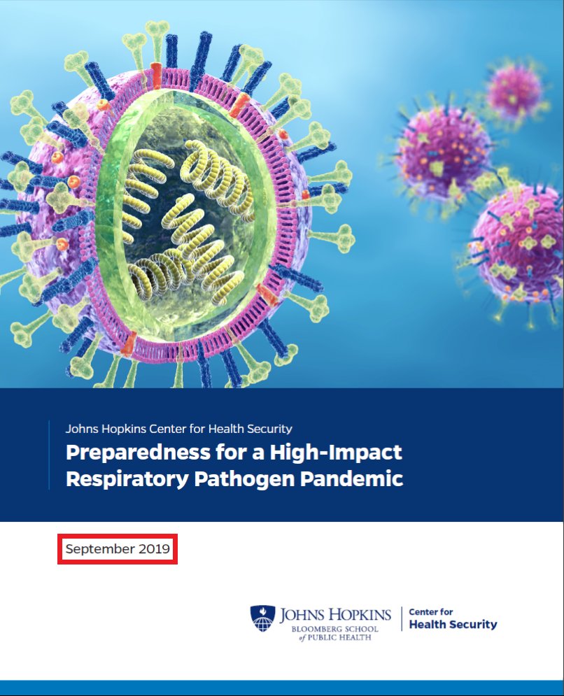 L'Event 201 qui s'est tenu le 18/10/2019 a fait couler beaucoup d'encre tant ses similitudes avec la "pandémie" qui allait bouleverser le 🌐 quelques mois + tard, étaient évidentes. Un mois plus tôt, l'université Johns Hopkins sortait un document beaucoup moins connu.. https://t.co/eBHKIawqYR