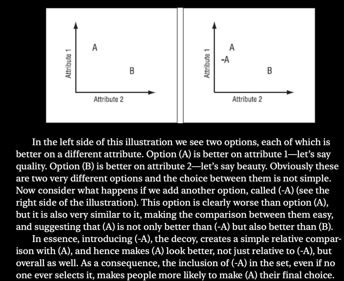 @G_S_Bhogal This is true when comparing 2 choices in a vacuum, but when there exists >2 choices, we actually tend to find more similar choices easier to compare. Great excerpt from Dan Ariely's "Predictably Irrational": https://t.co/LOPAtXt2pw